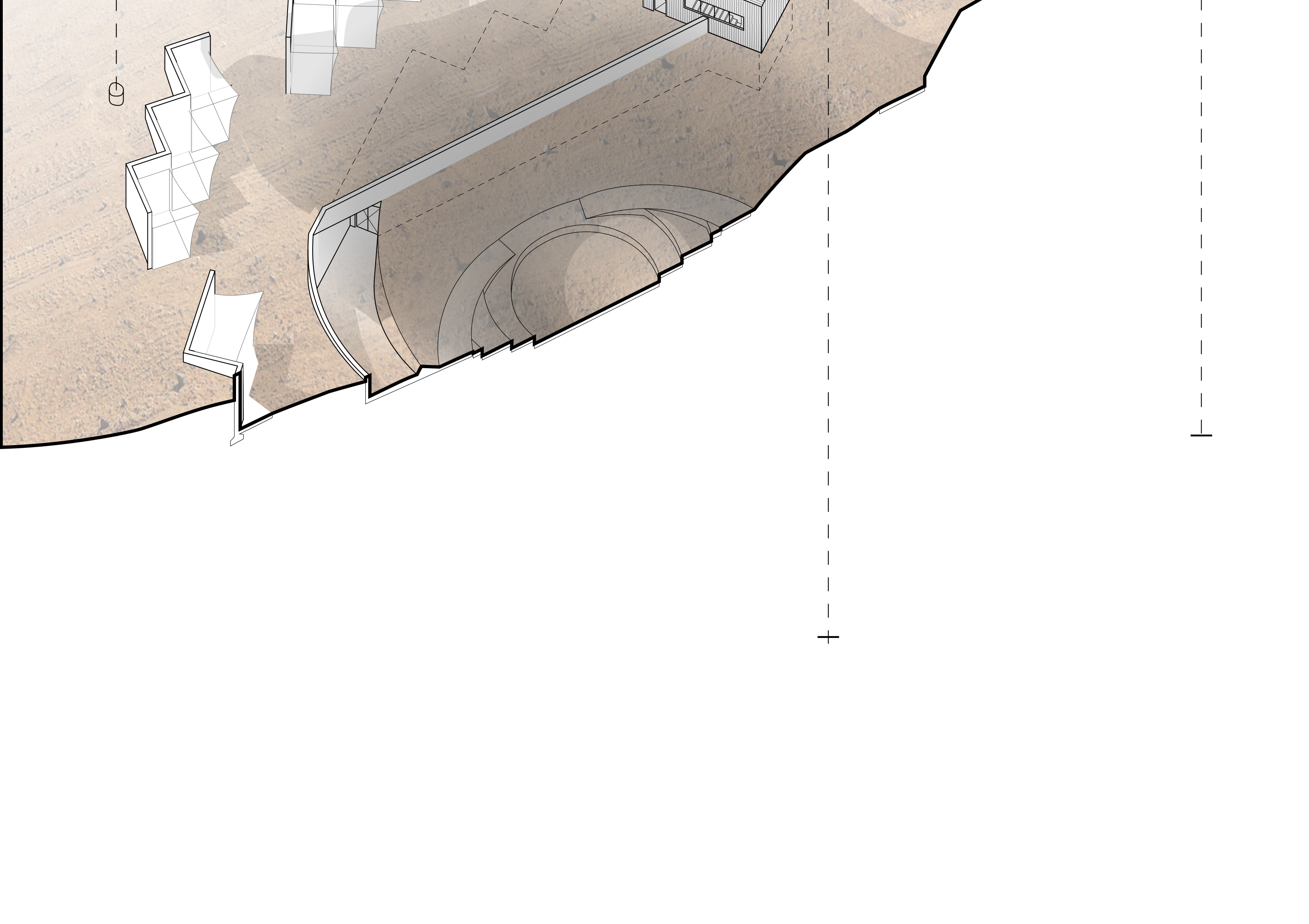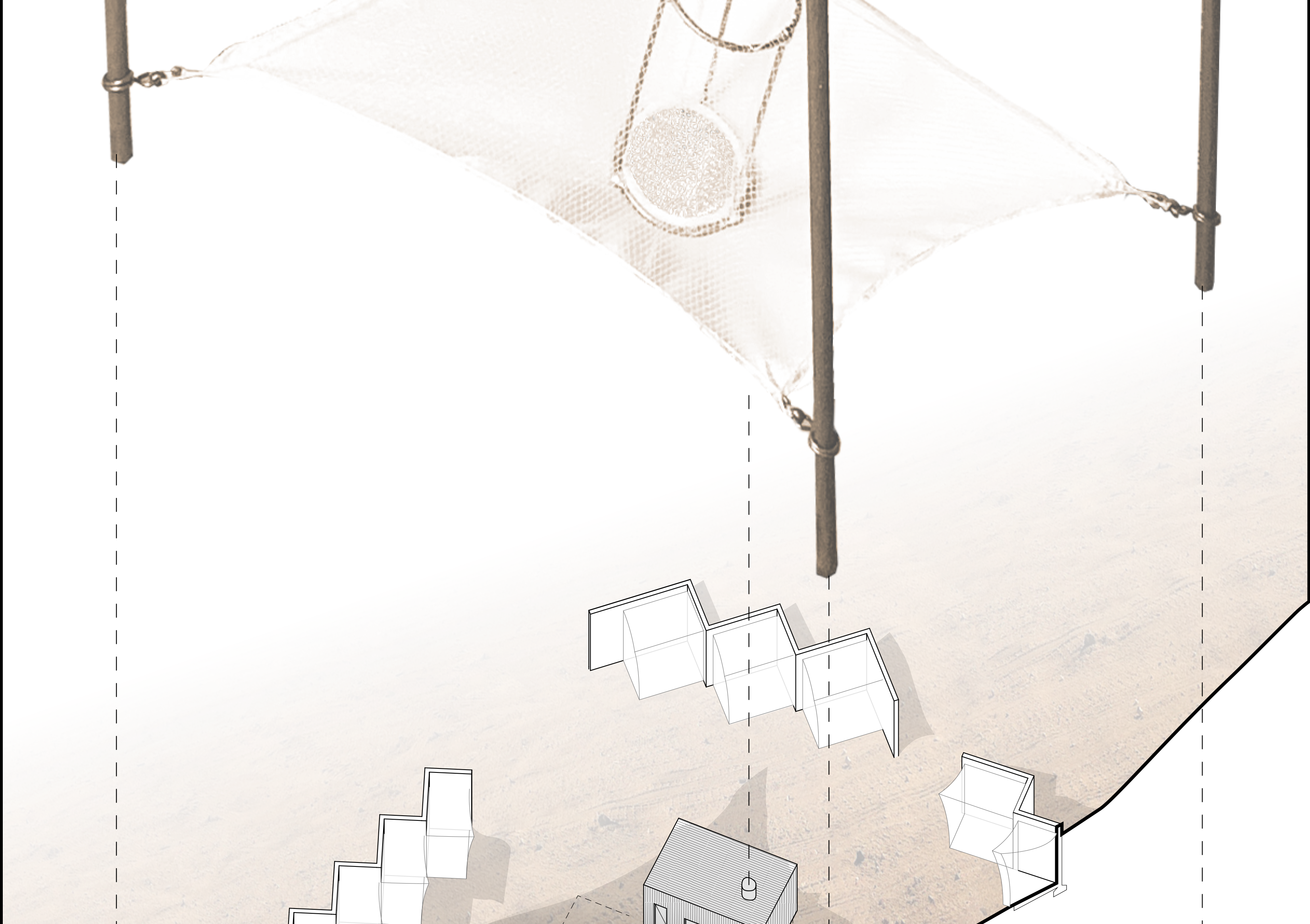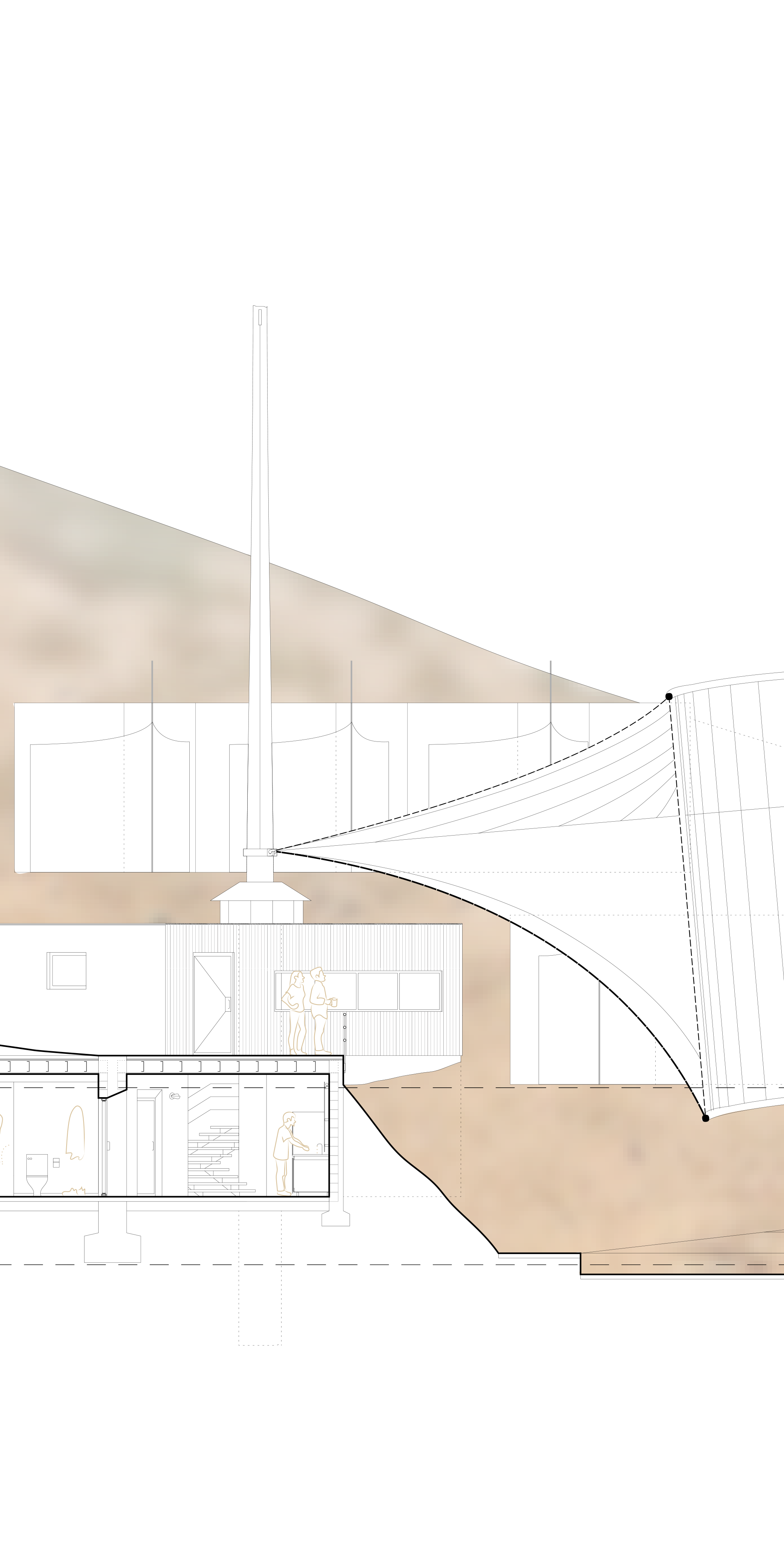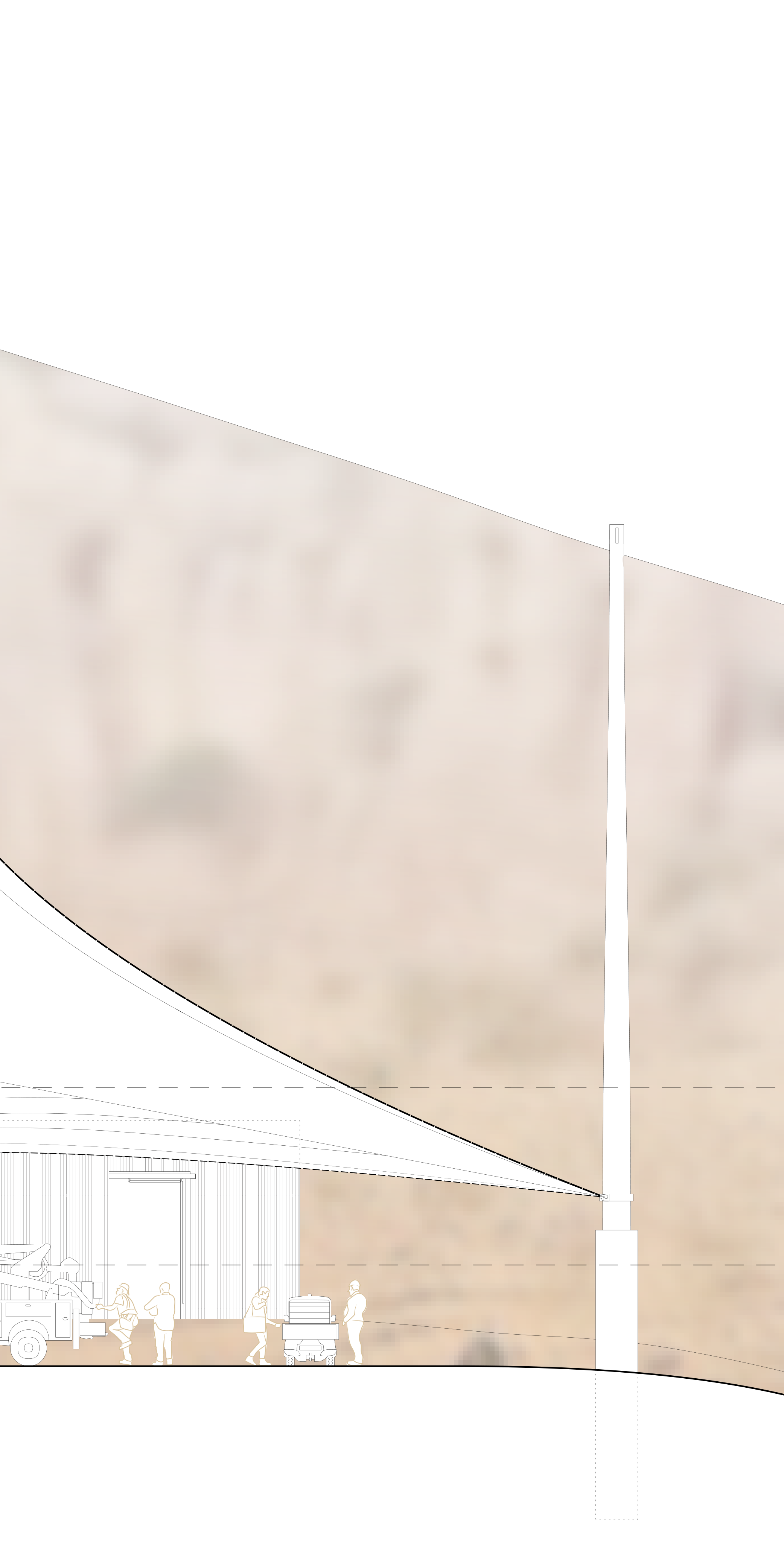 This basecamp is intended to first serve a hypothetical WPA-style effort towards total electrification of the power grid in Bisbee, AZ. Once accomplished, the campus is designed to transform into a theatrical residency, at which cast and crew can live and perform.