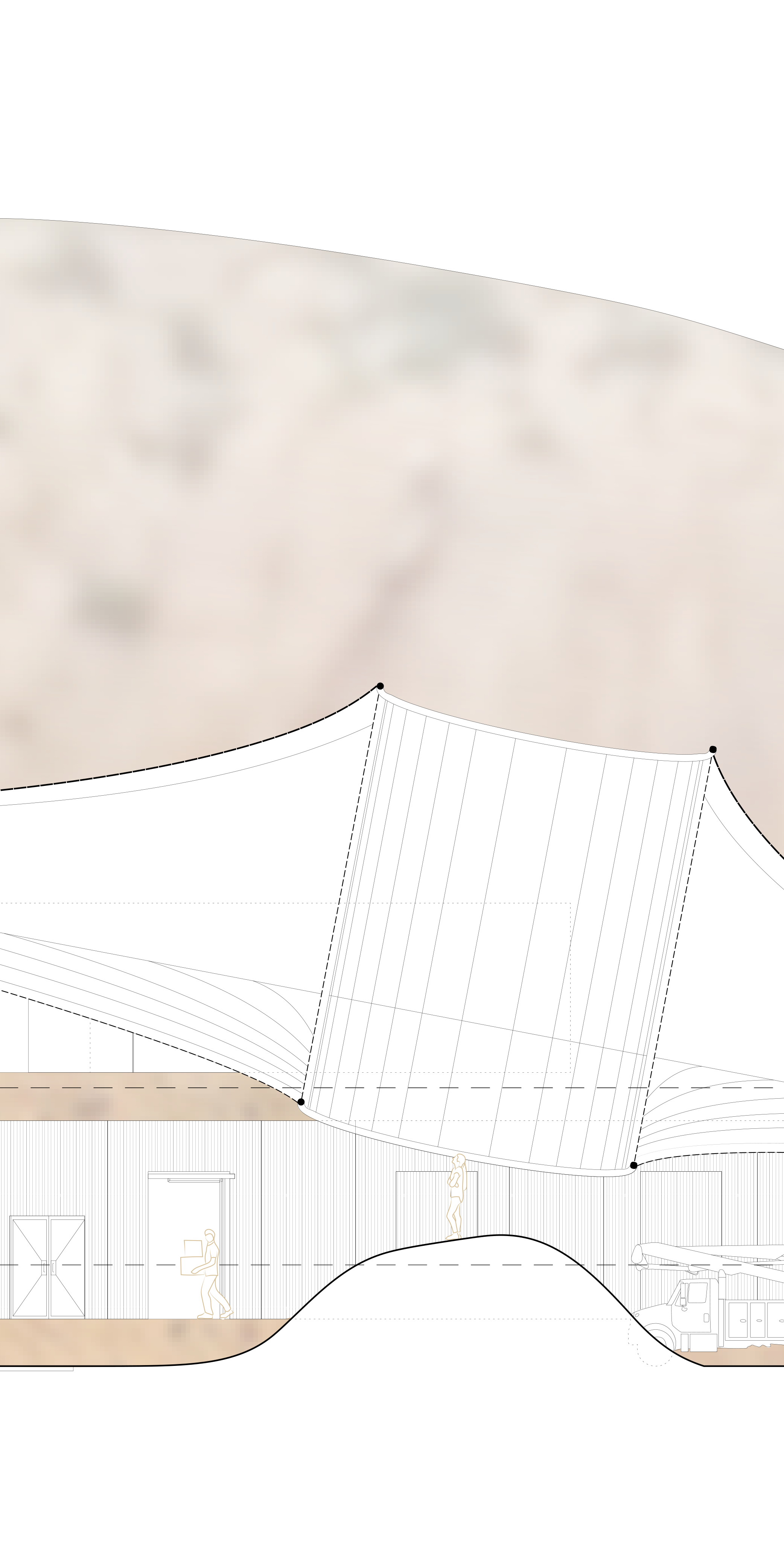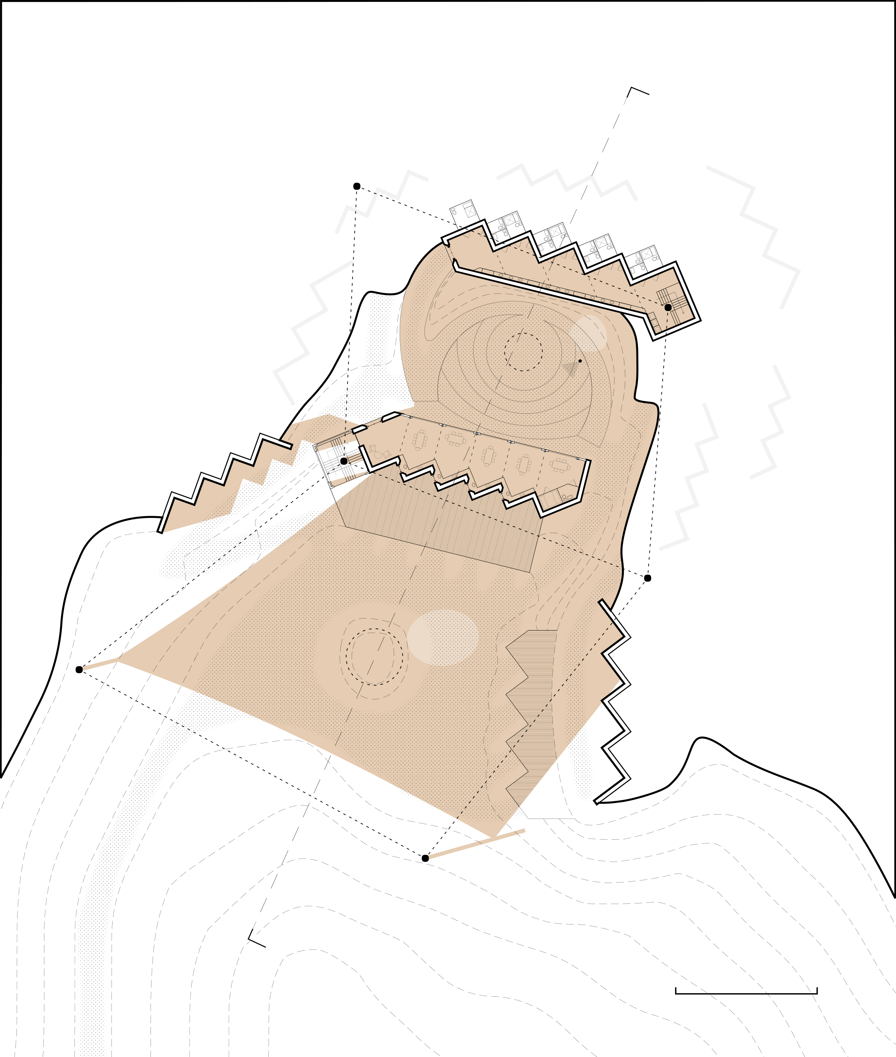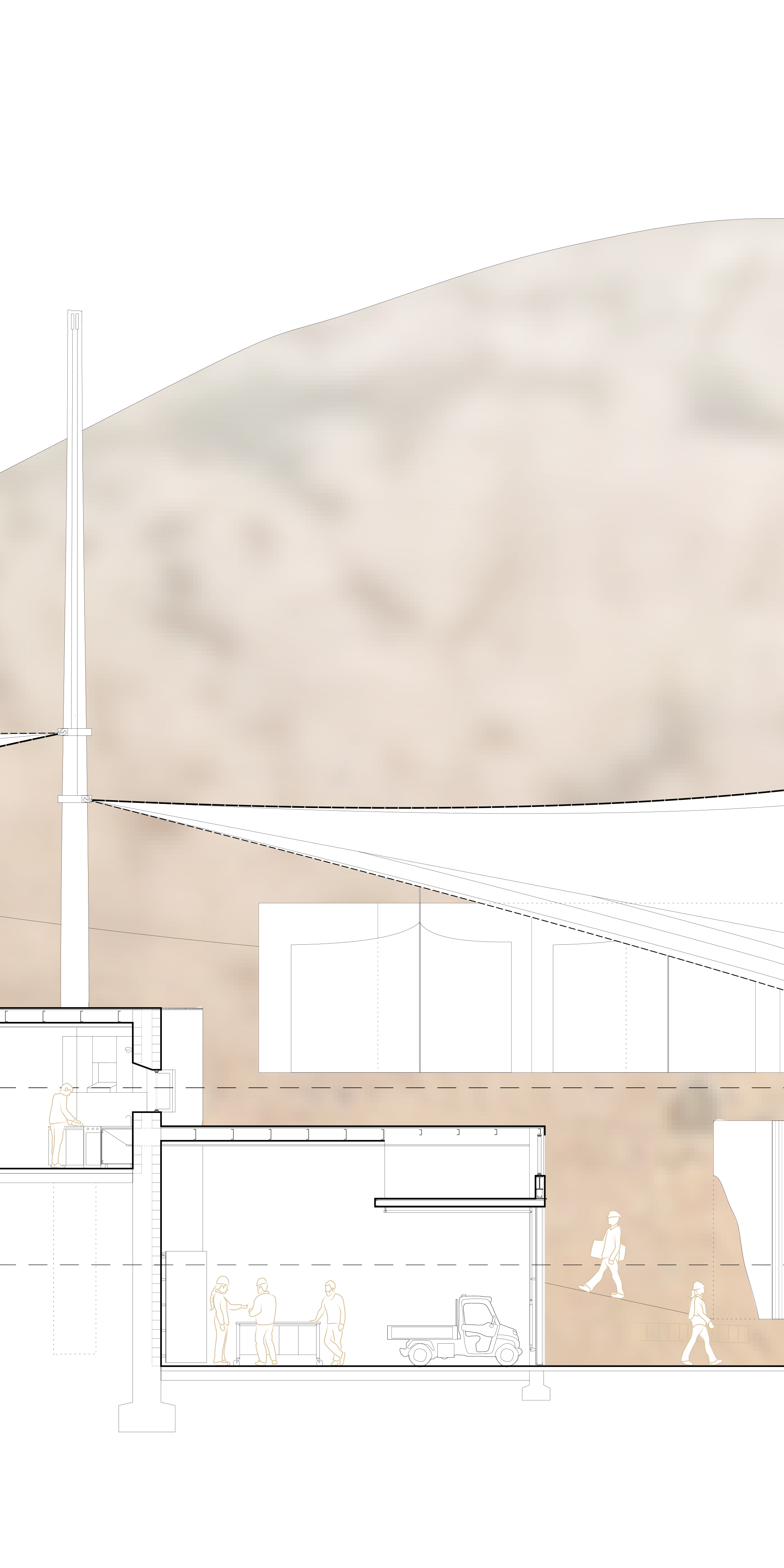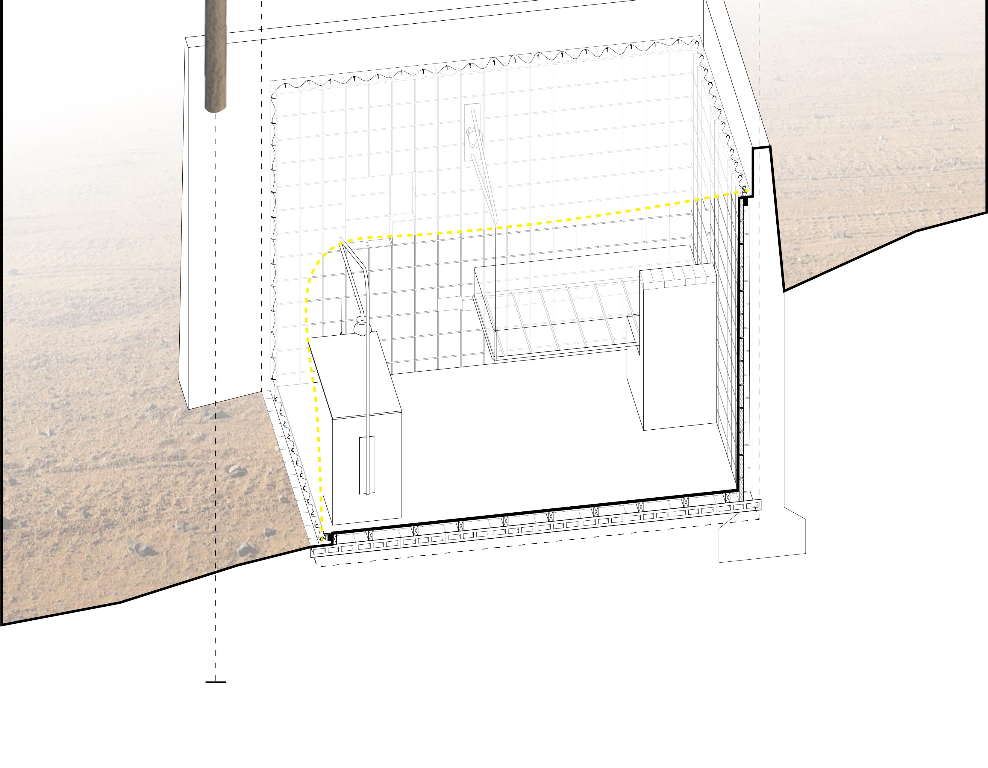 This basecamp is intended to first serve a hypothetical WPA-style effort towards total electrification of the power grid in Bisbee, AZ. Once accomplished, the campus is designed to transform into a theatrical residency, at which cast and crew can live and perform.